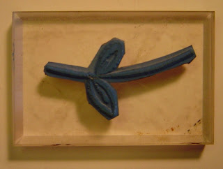 Now, here is the tip: Figure out how your images line up. You can see by looking at the photo of the blue rubber flowers that they are already lined up on the blocks--the outline stamp's petals match the position of the solid stamp's petals. So, if I were to stamp these flowers now, I could just turn the blocks over and be ready to stamp & my images would line up perfectly. But, I really don't want to have to try and figure out each time I stamp (especially if I am in a hurry) what position to stamp the images in so that they will match. So, this is what I do:
