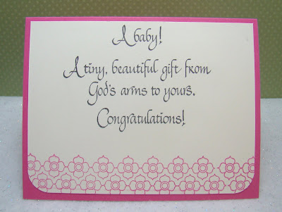 I wanted to decorate the inside of the card also. So far in my stamp collection, I only have one baby sentiment to fit inside (yes, the new PTI "Inside & Out Baby" is on my wish list!).