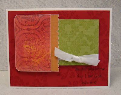 This next card has more of a "vintage" feel to it. I used Amberly Grace & More Mimi paper, as well as stamping my own panels with "Victorian Elements" to make the background. It's a nice "warm" card. I LOVE this color combo...in case you hadn't noticed before! :)