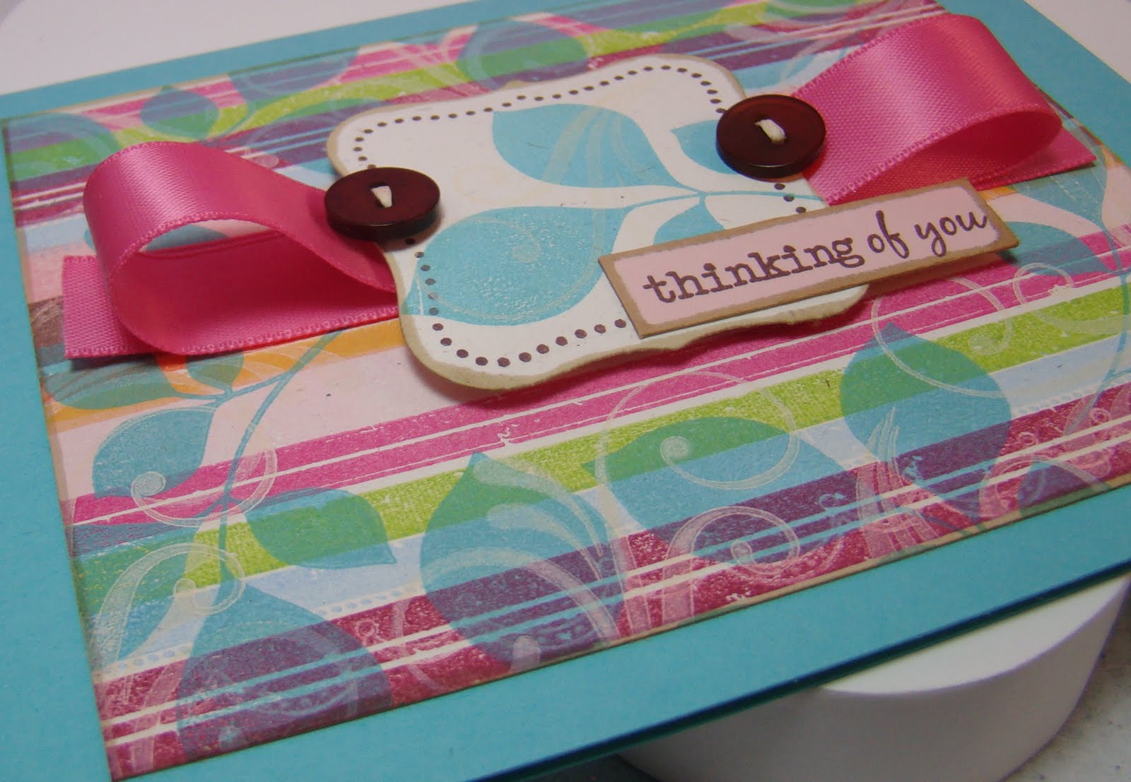 I am so happy with how this turned out. I love, love all the color in it! The buttons on the side of the label are chocolate brown but I realize that it's hard to tell from this photo.