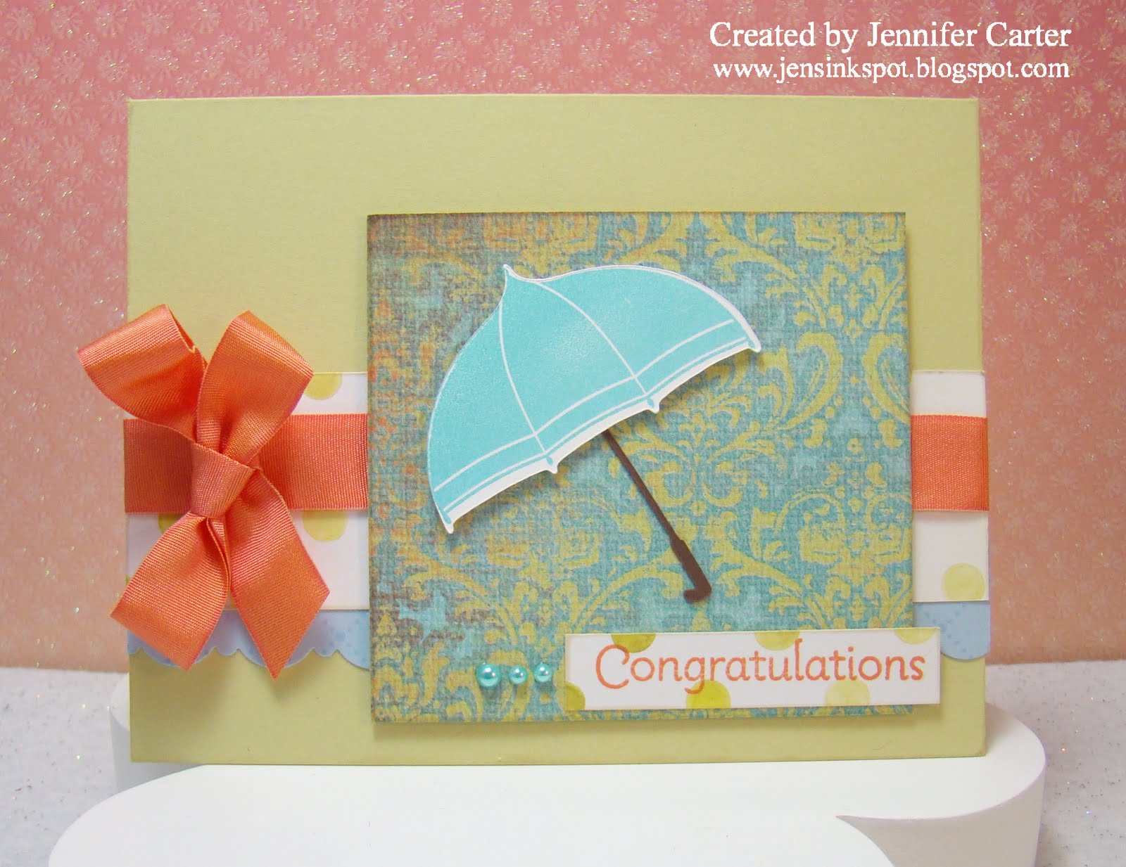 Jen, this is such a pretty card! I love the layout and that bow is really great! I too am a paper hoarder, I cant help it, some of it is just to pretty to cut into!