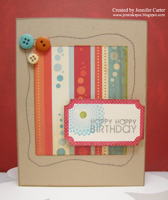 Love that Patterned Paper! Your stitching looks great too - love how it just meanders around the card! Well done, Jen!