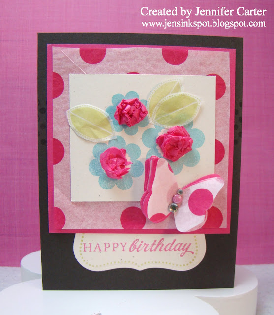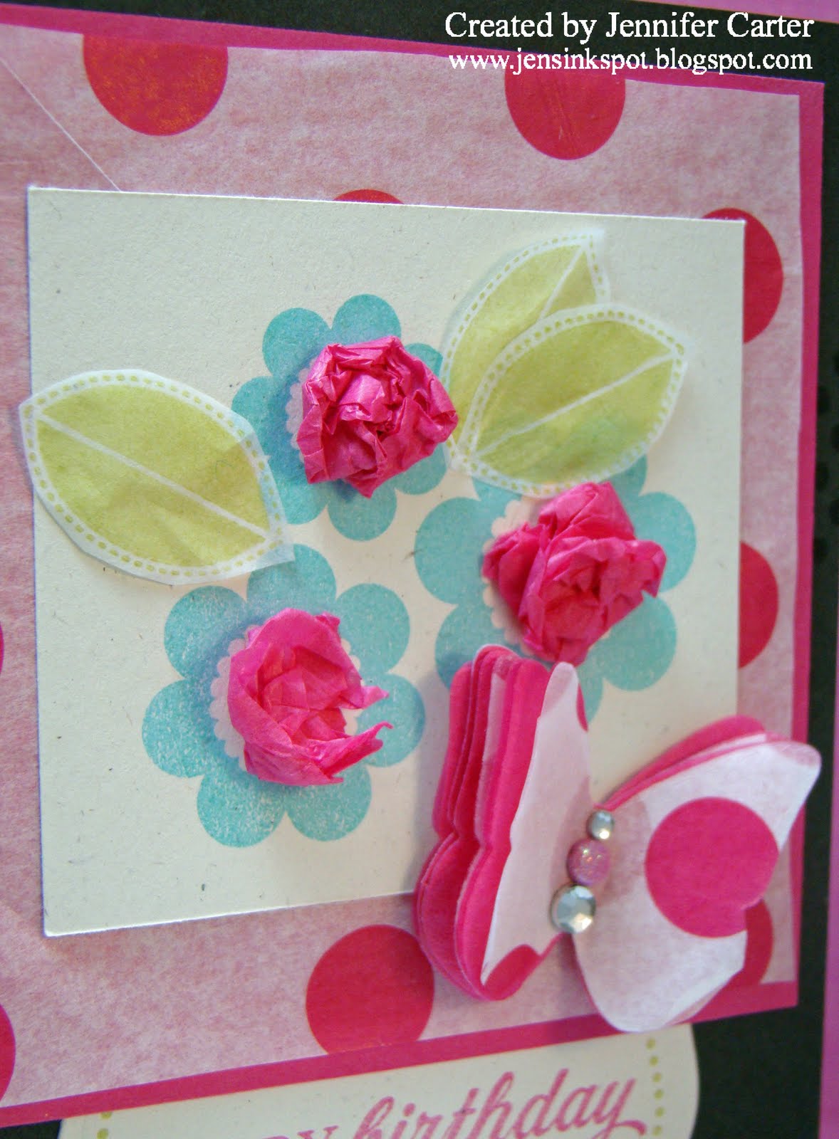 Jen you have been busy! What great tissue paper projects...how creative to use them as clouds!! I like the polka dot ruffles on the first card too!