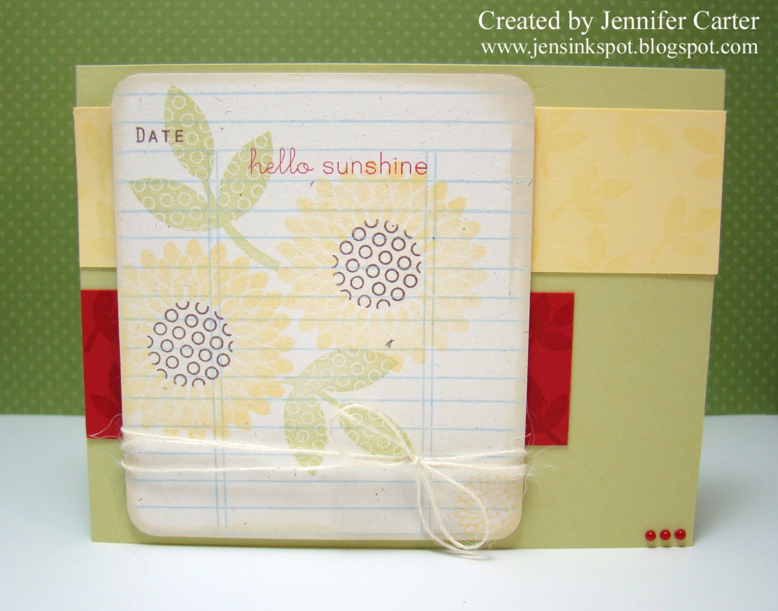 I really liked this color combination of Spring Moss, Lemon Tart & Pure Poppy. The touch of red just sort of highlights the rest of the card.