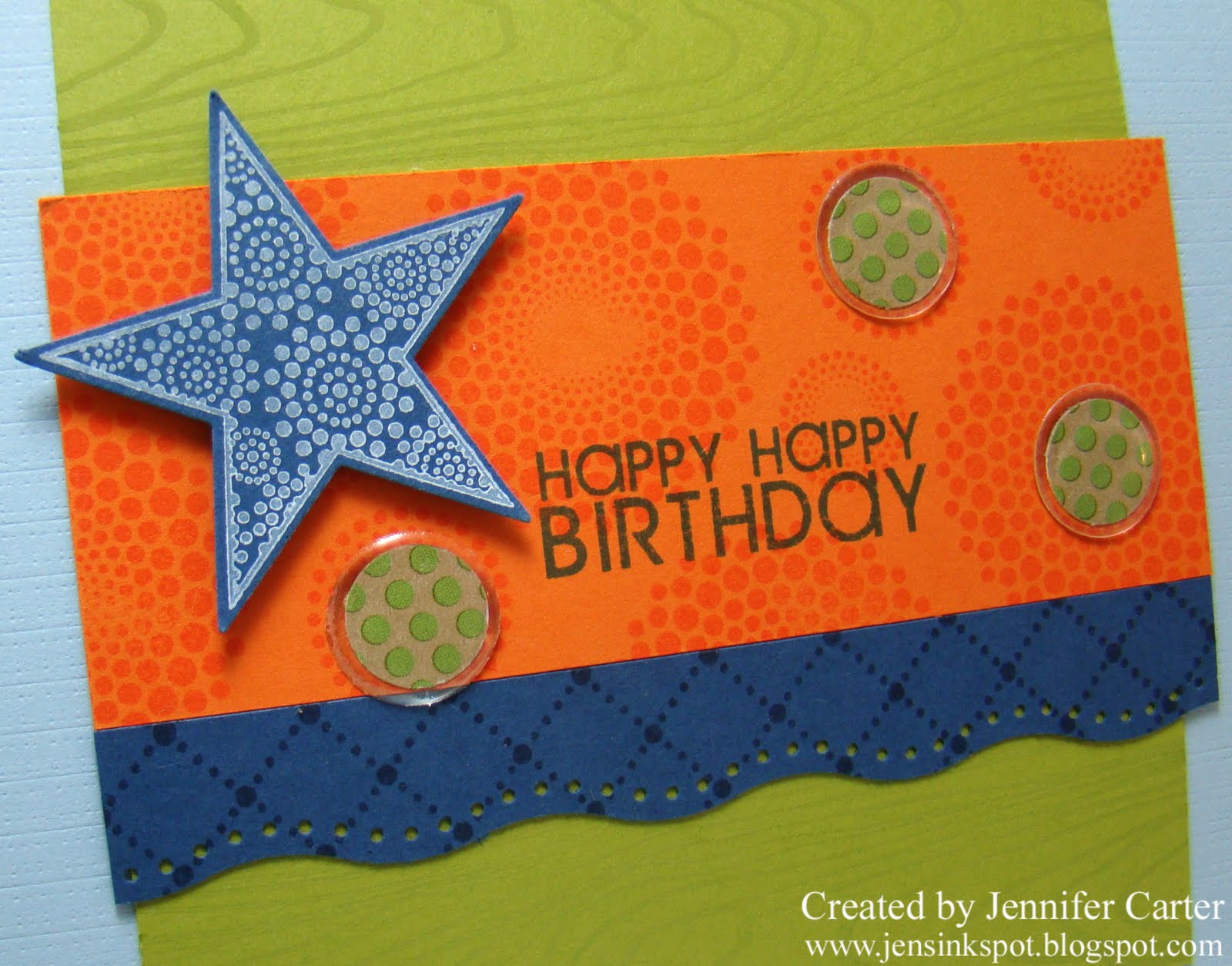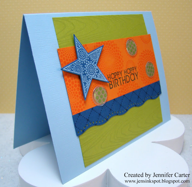 Love your take Jen! Bright, vibrant and cheerful card. Love all the textures.Dot spot star is so beautiful. Well done.