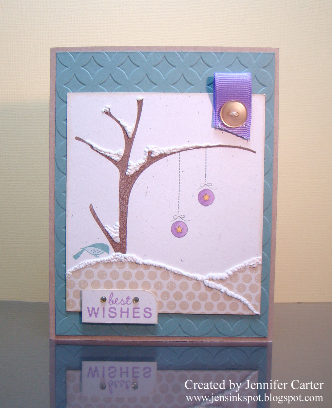 Soooo pretty!!! I love the embossed background and the ornaments are perfect!!!