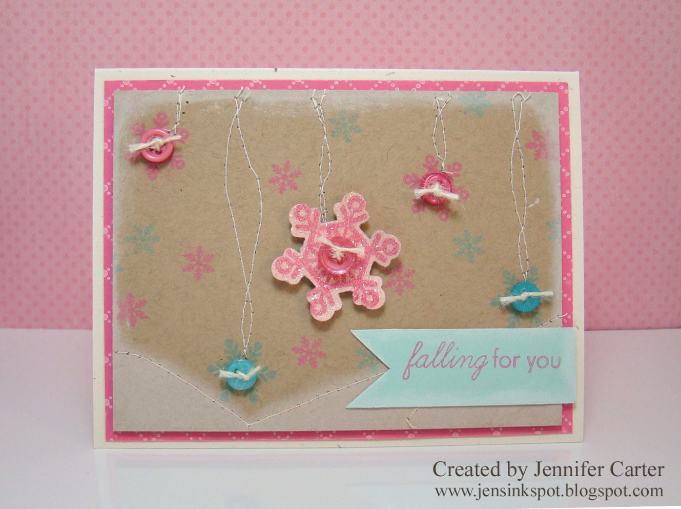 Oooh, how CUTE is this!!! Love how you used both snowflakes and buttons together, and the colors are just FABBY!!! Great card Jen!