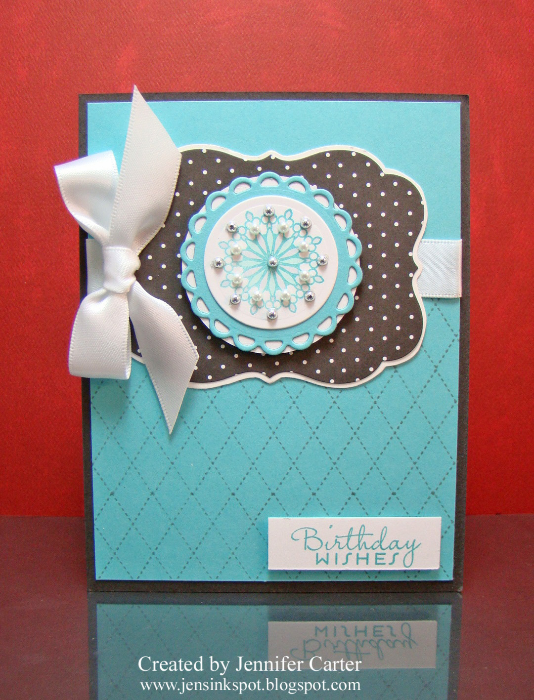 Jen what a beautiful card! You need to seriously stop using the Medallion set! Oh wait, no you don't because everything you're making with is is gorgeous! Keep making away! Love the added pearls to the medallion!