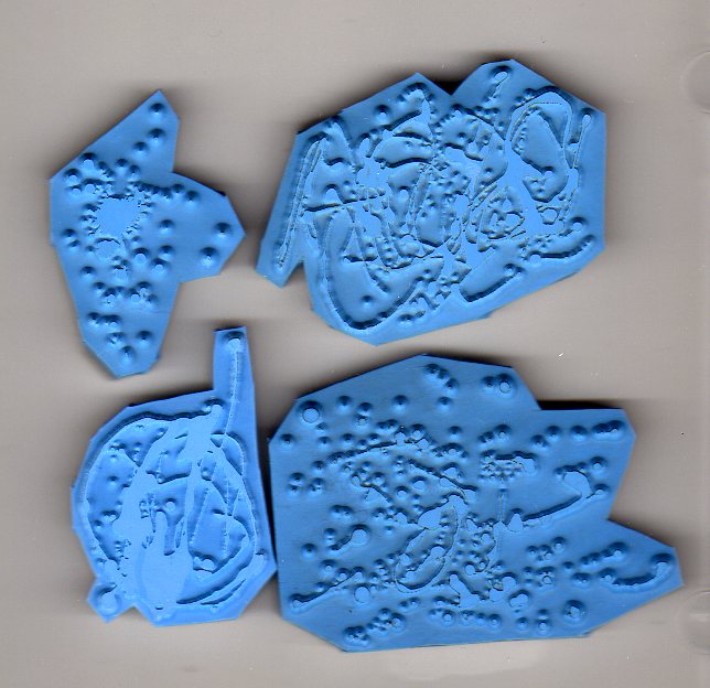 Angel Company Stamps (unmounted deeply-etched blue rubber stamps):