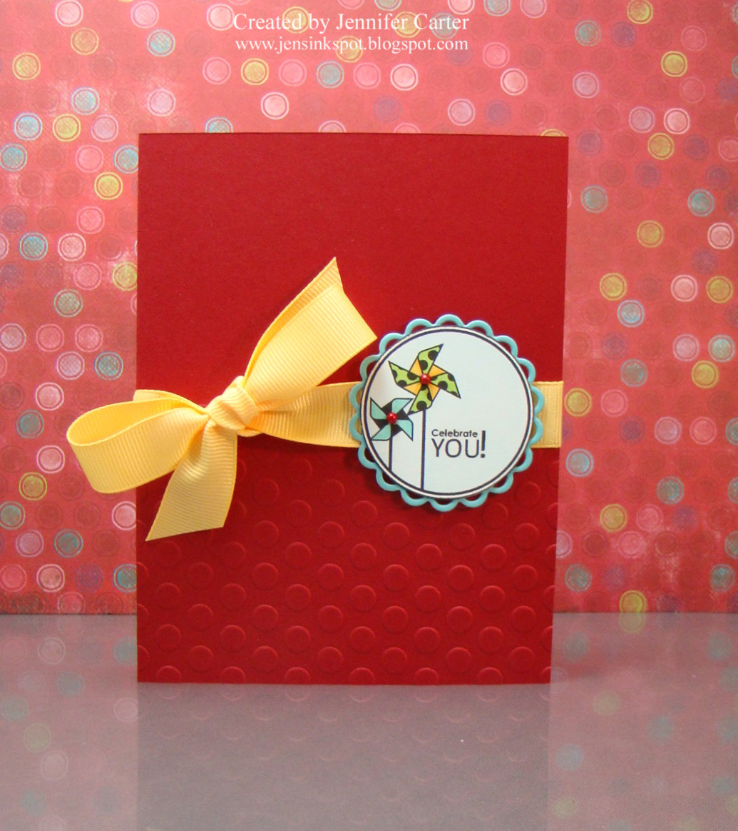 I love the red and yellow with the polka dot embossing. When you win you will have to remember that pinwheel stamp set idea!