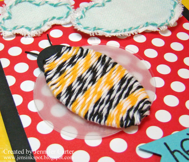 This card is adorable, Jen! I love how you stitched the clouds with twine and the bee is so fun!