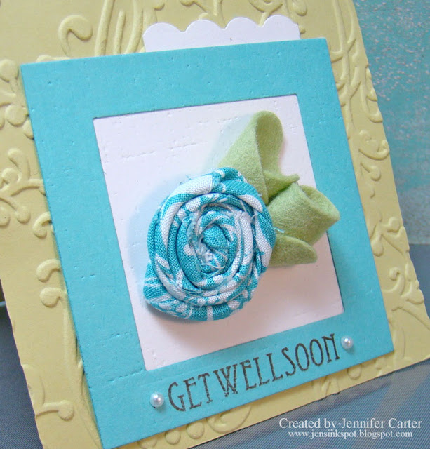 Ok.....you said a new way. Well, LOVE it! That rolled fabric flower is just beautiful Jen! Love those soft muted colors!