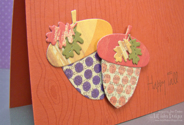 I made this card with the Lil' Inker Designs Acorns Stamp & Die set and also with Market Street Stamps Woodgrain Background.