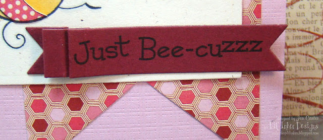 I went with a "traditional" yellow bee but put a spin on her stripes.  Of course this sweet little bee is perfect for Valentine's Day but she is also so cute for cards in general to those you care about and the "Just Bee-cuzzz" sentiment is perfect for those "everyday" occasions.