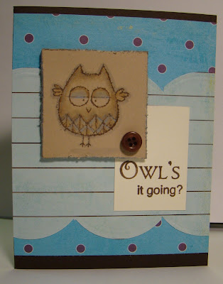 This is the first card I made using this set. I colored the owl with my colored pencils and Odorless Mineral Spirits. The paper is pulled from my "old" stash. Time to use up some of those patterned papers!