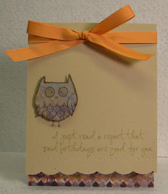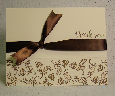 I saw a tip on someones blog recently about using clear embossing powder on cream cardstock and had to try it myself. Isn't the result stunning? It is so elegant. When I was done, it just said "wedding" to me. So, I added the sentiment, a button and ribbon and that was all there was to it.