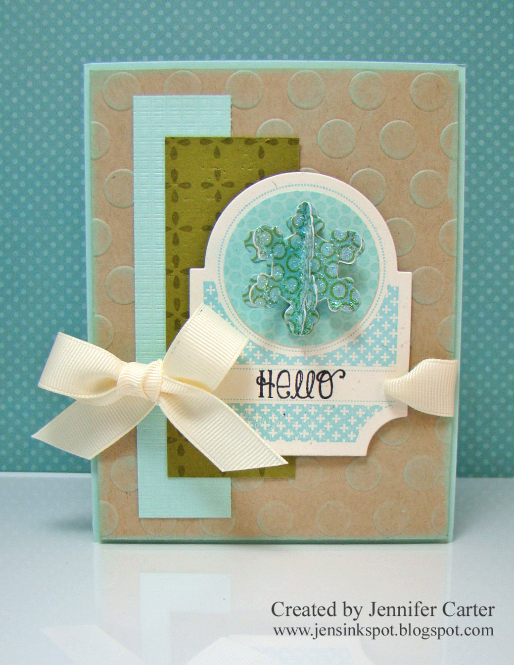 I have been wanting to use a 3D object on a card for a while now and so I decided that I would try a snowflake for this card.  If I were to put this in an envelope, the snowflake could lay flat. I think that this is such a fun element!