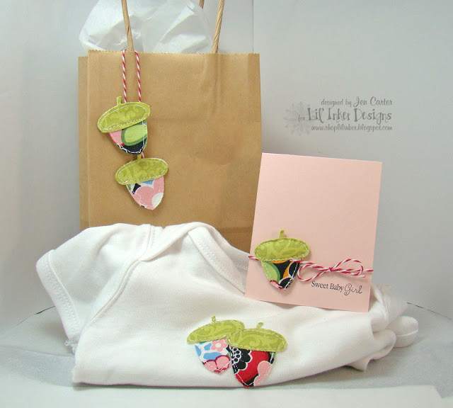 I made a baby gift set using the acorns cut out of fabric. It looks so adorable and was fairly easy to do!