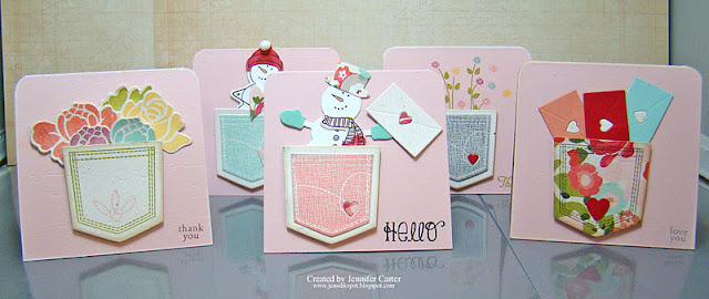 I tried to stick with a consistent color scheme and also with the pockets being front and center on each card.